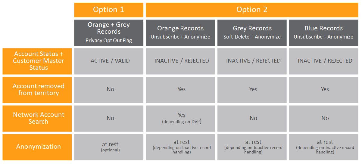 And while the first option is used by several customers outside of Europe, in my experience the vast majority of customers (if not all) in Europe have chosen this second option to handle the use case when HCPs opt out from their organization. So, if you are a customer in Europe implementing a process to comply with the “right to be forgotten”, my recommendation is to focus your attention on the second option. But of course, I will also deep-dive into the first option to give you the full picture and to let you know what the differences are between both options.
