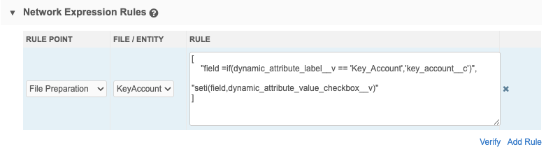 To map the dynamic attributes field names to Network field names, in the file preparation stage, create a new attribute called field.