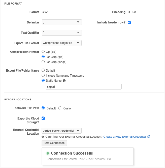 Click Test Connection. Network validates the credentials and ensures that the S3 bucket exists.