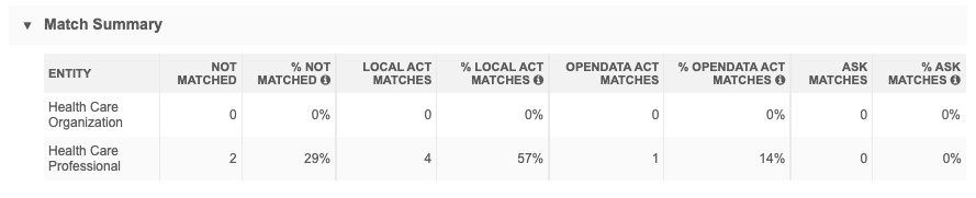 - Provides information about settings that were activated. For example, you can see the selected setting for Action for Unmatched & Suspect Match.