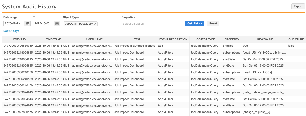 The Job Impact Dashboard can be accessed from the Reports menu or from any source system or subscription that adds or changes data in your Network instance.