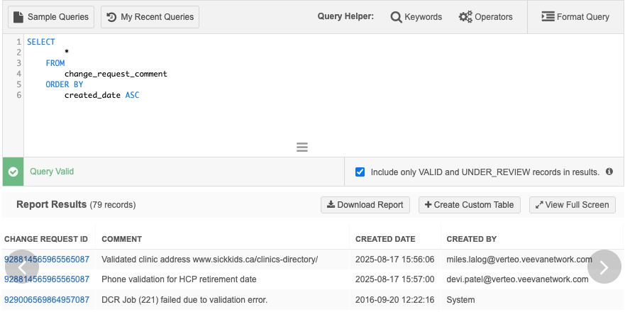 Network users with access to advanced ad hoc queries can report on comments in DCRs.
