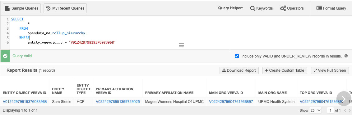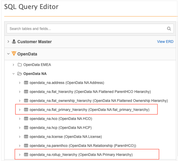 OpenData Flat Primary Hierarchy - Use to report on the records that Veeva OpenData considers as primary.