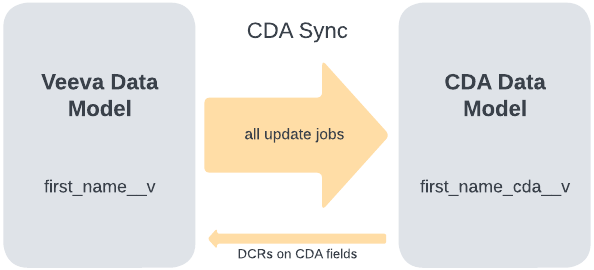 DCR values on legacy fields are not overridden by CDA Sync. During the DCR process, CDA Sync will update the CDA field values to the legacy fields.