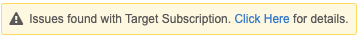 Click the link in the warning to review the details. On the dialog, click the name of the target subscription to open the subscription details.