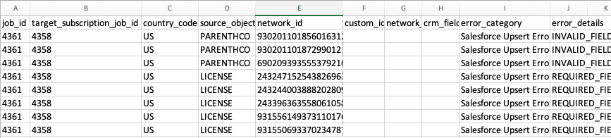 This section displays the FTP server and site (/outbound/crm_data_subscription/<job_id>.csv). If the job contained no errors, the file is still created but it will be empty.