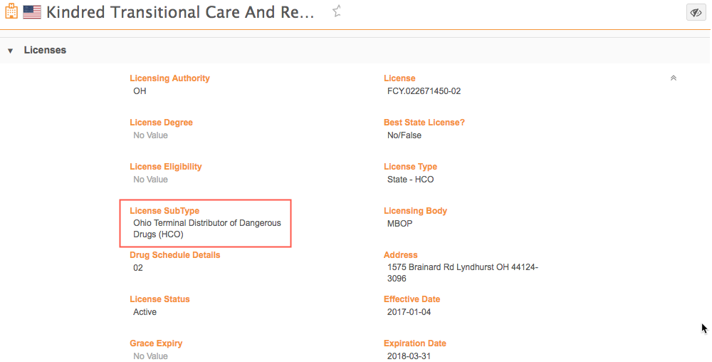 Network supports storing data for the Ohio Terminal Distributor of Dangerous Drugs (TDDD) license. Veeva OpenData offers this as part of the US OpenData subscription for HCO records. This data can be exported to Veeva CRM so users can access the data for sampling purposes.