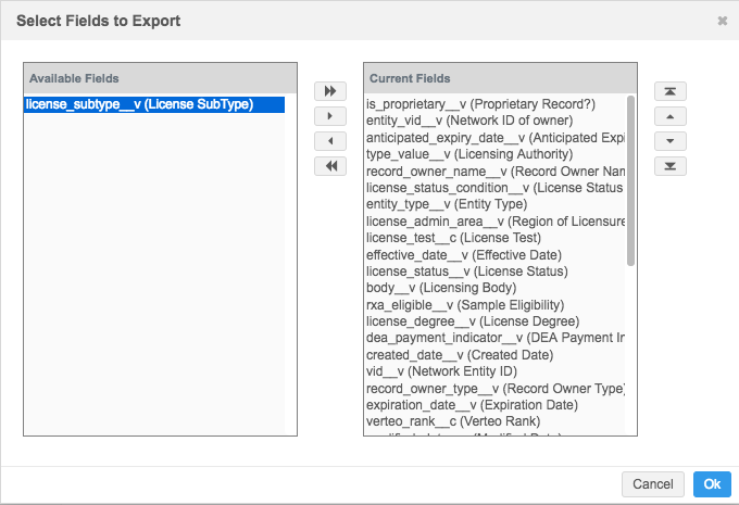 icon to move it to the Current Fields pane. Click Ok. Adding this field will cause a full export to Veeva CRM when the next scheduled job runs.