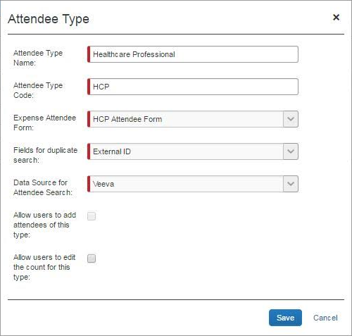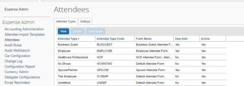 When migrating to SAP Concur, you should inactivate the existing HCP Attendee type and create a new HCP Attendee type for use with Network. SAP Concur Professional Services or an SAP Concur admin user has permission to add or change the HCP attendee type.