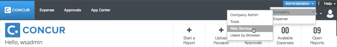 - Log into SAP Concur with the Web Services Admin user credentials.