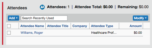 - Select one or more records and click Add to Expense to add them to the expense report. You can click the attendee name to view detailed information on the record.