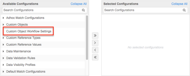Workflow settings for custom objects can be included configuration export packages and imported to target environments. When you are adding configurations to your export package (Settings > Configuration Export), workflow settings for custom objects are located in the Custom Object Workflow Settings node.