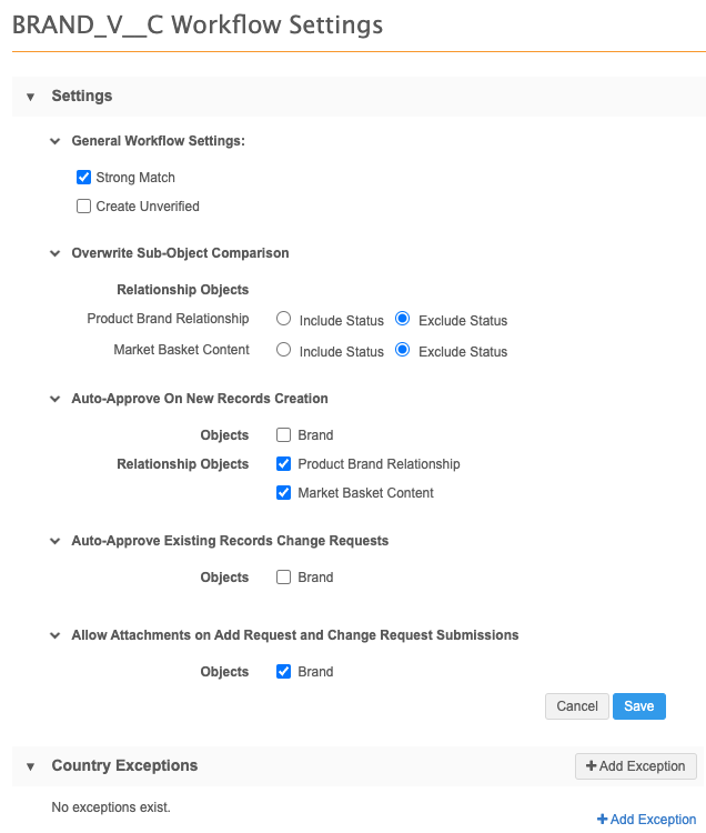 - Optional. In the Country Exceptions section, click +Add Exception to specify countries where these settings should be different.