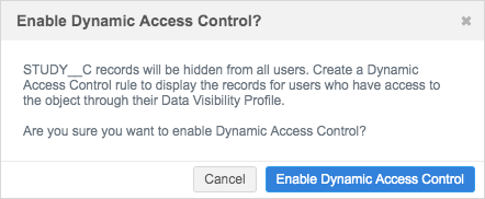 After dynamic access control is enabled, no users have access to the custom object records until you create rules and add users or user groups.