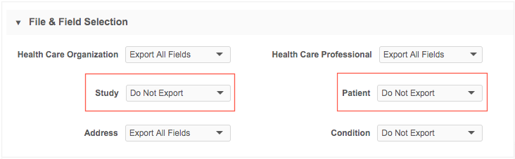 In the File & Field Selection section, ensure that Do Not Export is selected for any restricted custom objects that should not be included in the export.