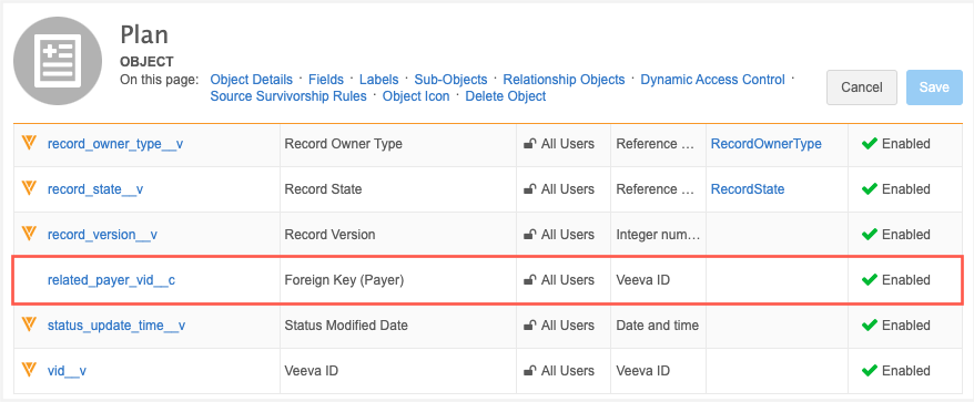 - Invalid relationship - When a relationship object's record state (record_state__v) is updated to INVALID or DELETED, the related VID field value on the owner object is updated to -1. The relationship cannot be updated to VALID again. A new relationship record must be created.