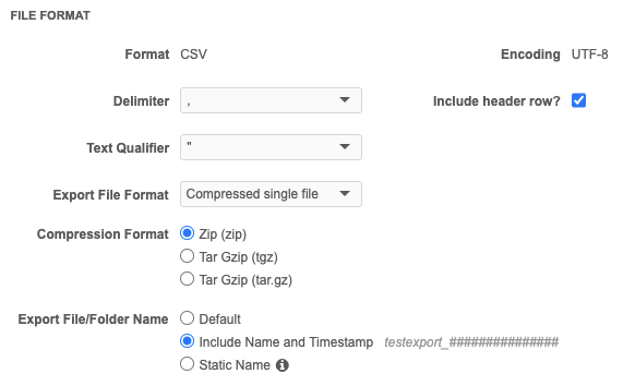 Note: The configuration details after this point applies to Data exports.