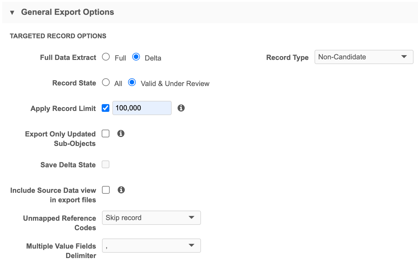- Candidate - Export only candidate records.