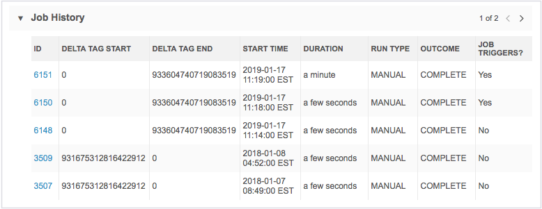 - Job ID - The job ID link displays if this job was triggered by the successful completion of another job.