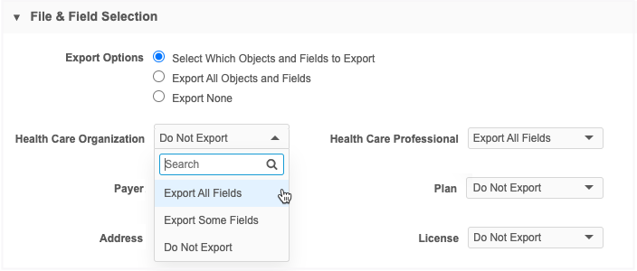 - Type - Use to specify the type of HCP or HCO records to export. For example, Prescriber (HCP), or Organization (HCO).