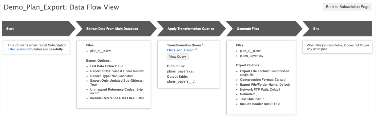 After you save a target subscription, a new Data Flow View is added to the Details section to visualize all of the steps of the job, including the input and output files.