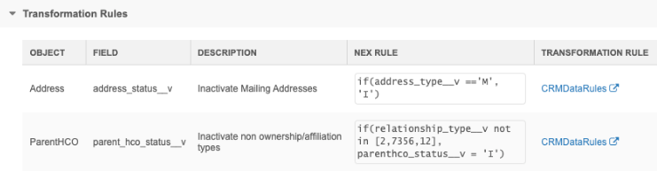 Data can be transformed before it is exported to downstream systems or pushed to Veeva CRM. Create transformation rules using Network Expressions for a specific system, object, and field.