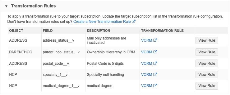 To open the rule configuration, click the link in the Transformation Rule column.