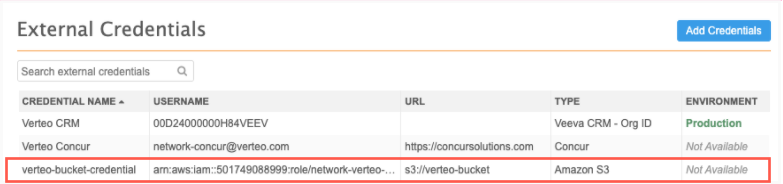 External Credential Location (S3 URI) - s3://verteo-bucket
