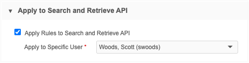 Apply Rules to Search and Retrieve API calls that use the System - Choose to apply the rules to the system defined for this rule.