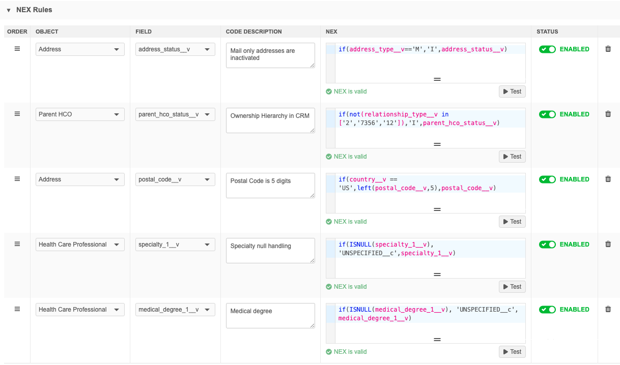 Note: For rules that change an object status to Inactive (for example, addresses or relationships), if it is pushed to Veeva CRM, some CRM settings will then remove those records. For more information, see the Veeva CRM integrations above.