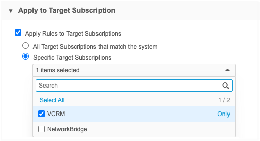Specific Target Subscriptions - Choose the specific target subscriptions that these rules apply to. All of the enabled target subscriptions that use this source system display in the list.