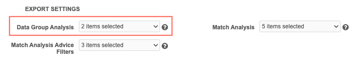 When the job runs, the data group analysis is exported to a .csv file; for example, the HCO file name is <subscription_name>HCO-DATA-GROUP-ANALYSIS-<date>-job-xxx.csv.