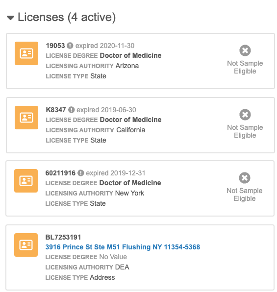 (SELECT DISTINCT (lic.type_value__v FROM licenses__v AS lic WHERE lic.license_status__v == 'A' AND UPPERCASE(lic.record_state__v) == 'VALID' AND UPPERCASE(lic.type__v) == 'STATE' AND (lic.type_value__v IN ['CA', 'CO', 'WA', 'DEA', 'NY']) ORDER BY lic.type_value__v) AS result, IF(ISEMPTY(result), null, JOIN(result, ';')))
