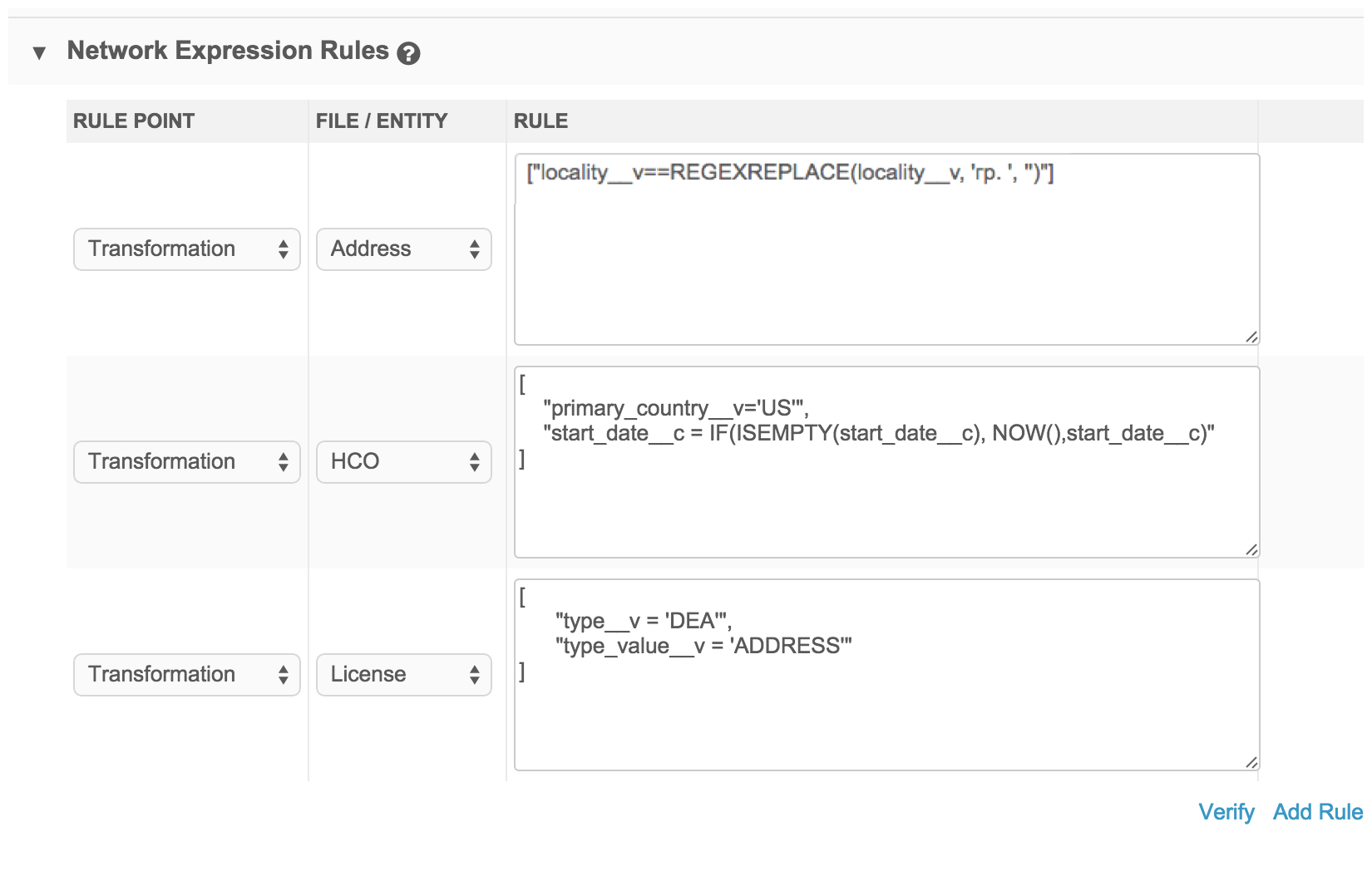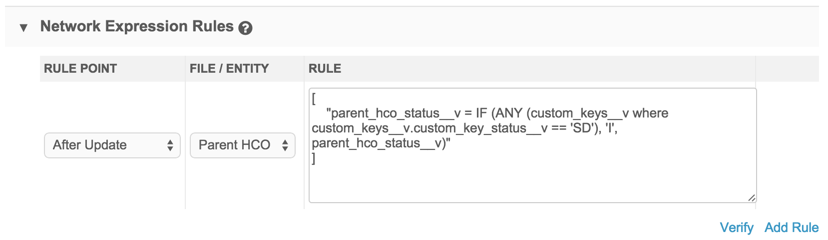 After update rules are applied after Network has joined files and matched and merged records. All functions are available and are applied to the post-merge state of the data. These rules only run on an entity for which data is being changed; If the import is identical to existing data, they will not run.