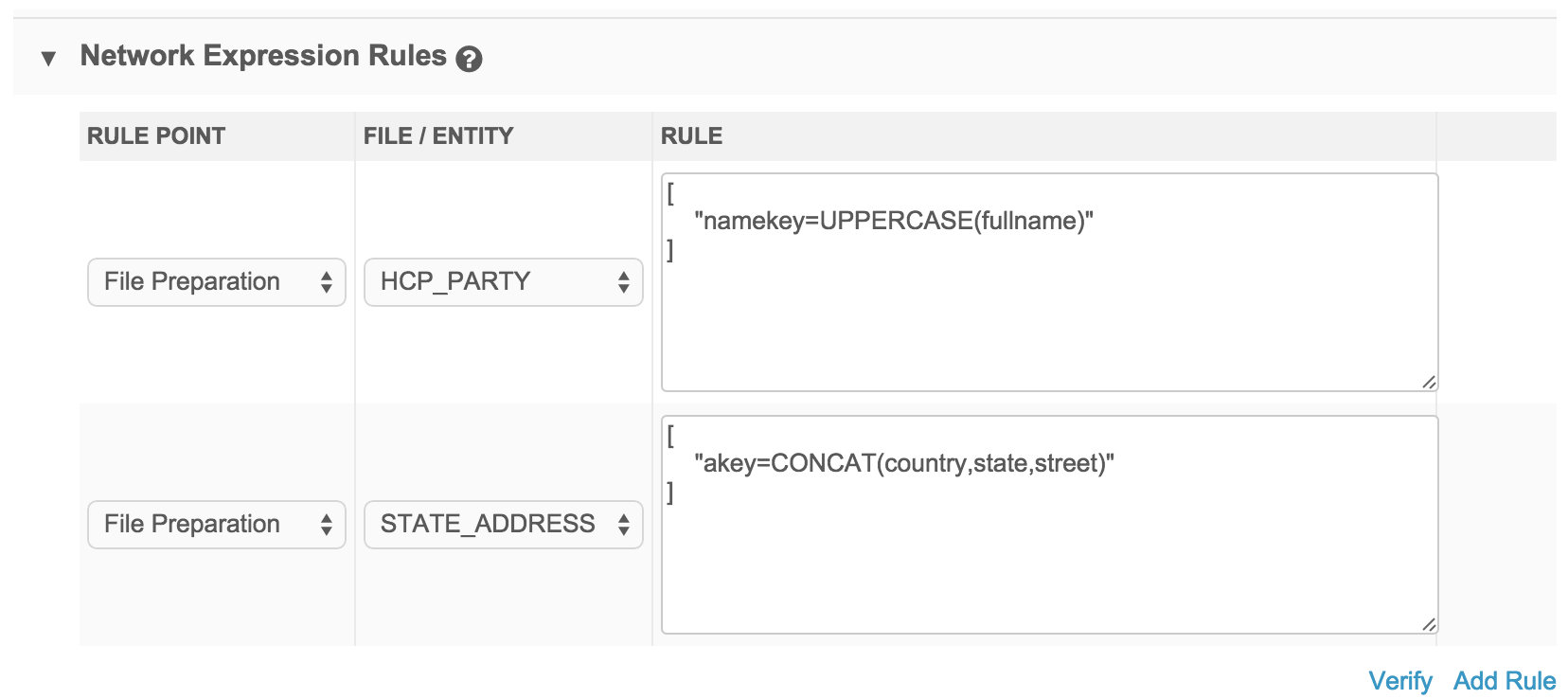 File preparation rules are applied after Network reviews each file individually, but before it joins them. This rule point is often used to properly format custom keys.