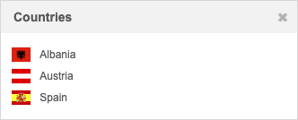 If there is one country, the country name displays. If multiple countries are selected, a count of countries displays. Click the count to display a pop-up of the countries.