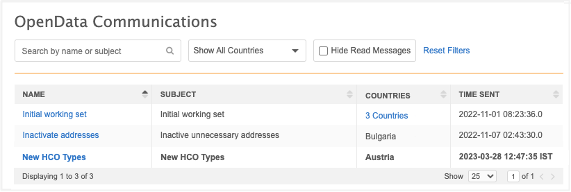 Use this page to view and manage all of the communications that you receive from OpenData in your Network instance.