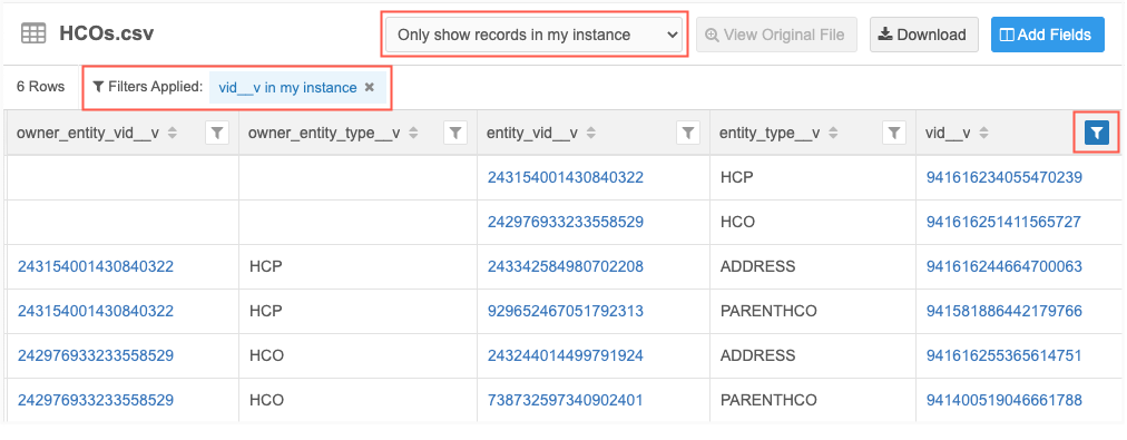 Only show records in my instance - Display only the rows in the file where vid__v values are in your Network instance.
