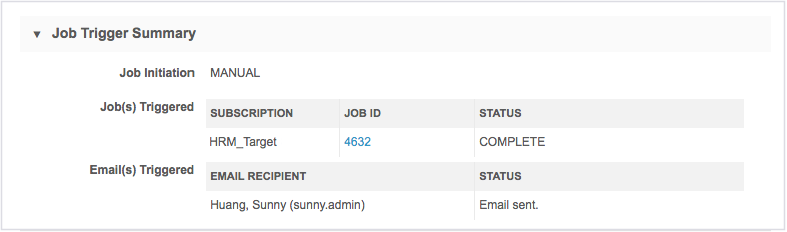 The Job Trigger Summary section identifies subsequent jobs or emails were triggered by this job.