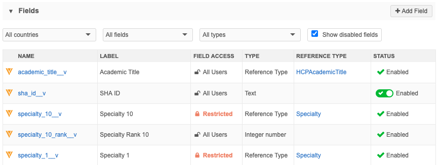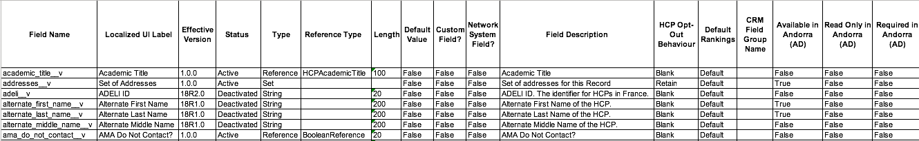 Note: Veeva Network does not provide data for custom fields. Custom fields are private and are not shared with Veeva OpenData.