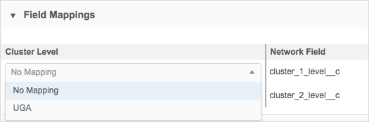 4. In the Field Mappings section, map the cluster levels from the provider to the available data model fields. Each third party cluster provider defines their own cluster levels.