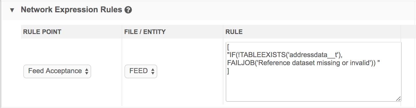 "IF(!TABLEEXISTS('addressdata__t'), FAILJOB('Reference dataset missing or invalid'))"