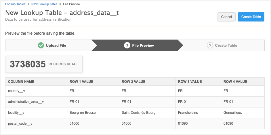 The wizard will open again so you can choose a file. The name and description cannot be changed, but you must confirm the Third Party Data question again. Preview the file and click Update Table. Messages will display on the Lookup Tables page to confirm that the table was updated.