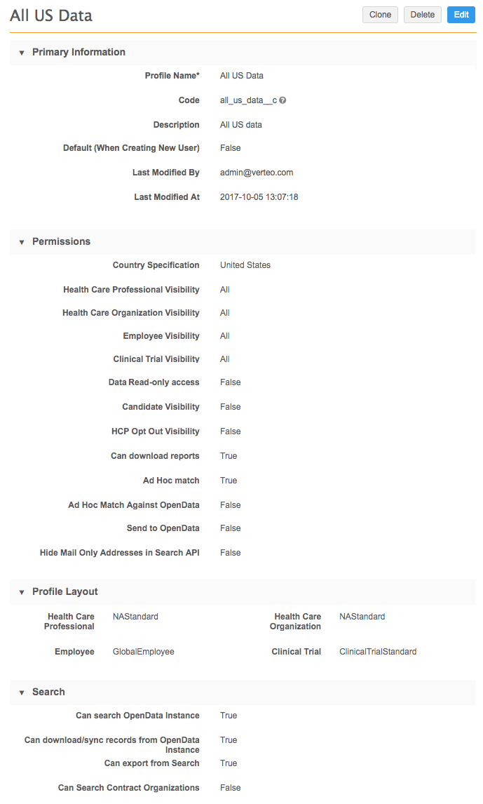 Direction from an HCP that their personal attributes should not be visible to those who use Veeva OpenData. Capture of opt-out requests is required by law in some countries. records. For more information, see Data privacy opt-out. - Can download reports- Specify whether users with this profile can download reports.