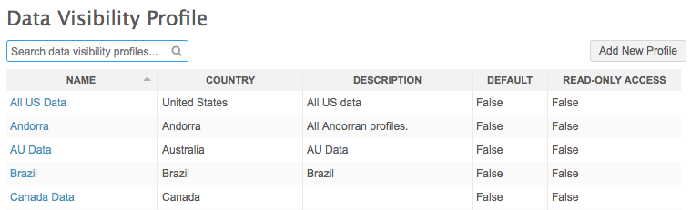 - On the Data Visibility Profiles page (Users & Permissions > Data Visibility Profile), click a profile in the Name column.