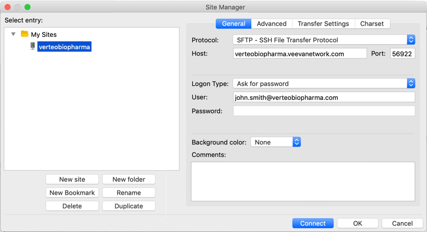 • Host - Type the URL of your Network instance; for example, verteobiopharma.veevanetwork.com (without the HTTPS protocol).