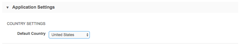 To update the default country for your Network instance, in the Application Settings section, select a country from the Default Country list.