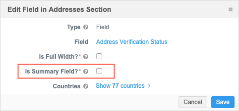 On the Edit Field in Addresses Section dialog, clear the Is Summary Field checkbox.