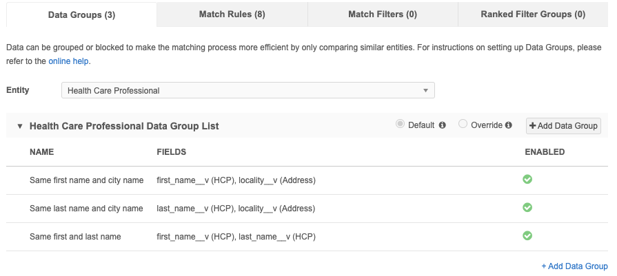 Note: Data group definitions are critical to the match process; they must be defined effectively.