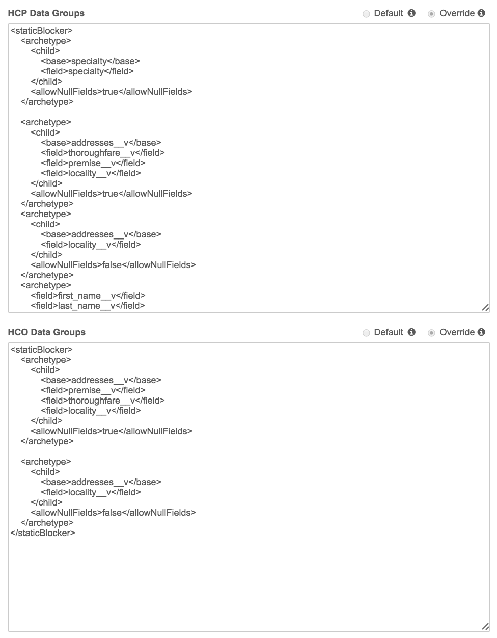 When you begin updating the match configuration, the radio button automatically switches to Override to indicate that the configuration is solely customer-maintained; Veeva will not apply enhancements to the configuration.